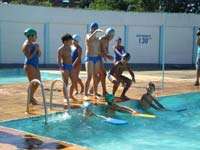 A manhã estava linda, com muito sol e bastante disposição das crianças e adolescentes, com idades de 7 a 16 anos, que participaram do Campeonato de Natação, na piscina do clube.