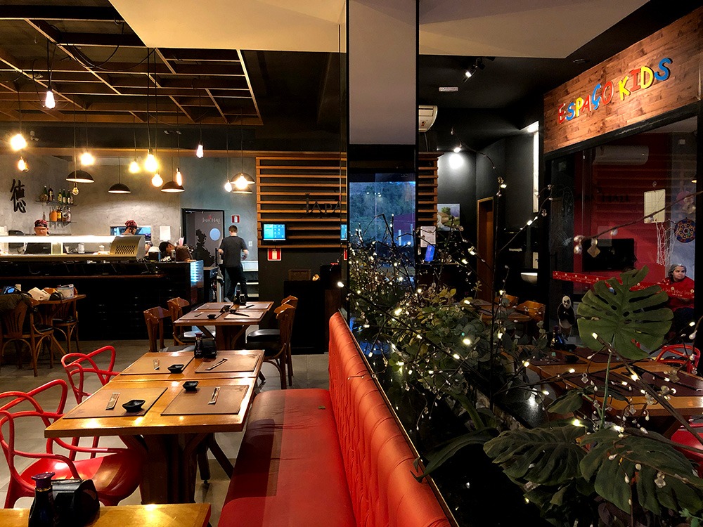 Atende no salão (à la carte e rodízio) e também no delivery.